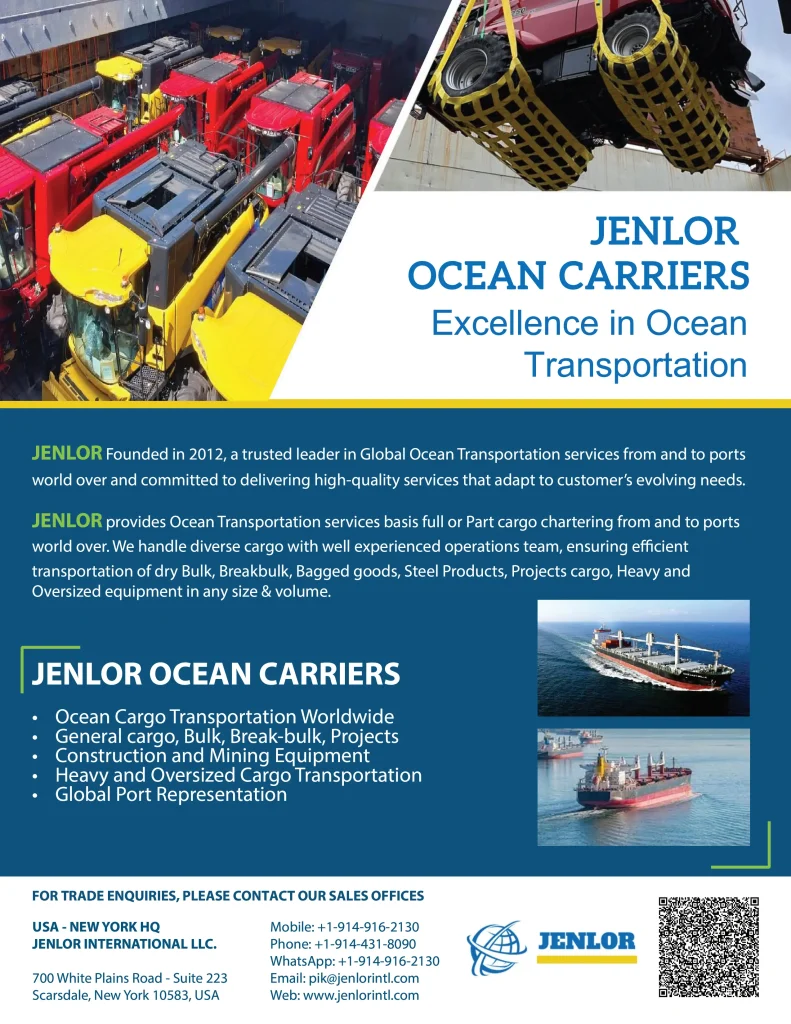 JENLOR International’s chartering department offers multipurpose ships suitable for full or part cargoes to ports throughout the world beyond existing…